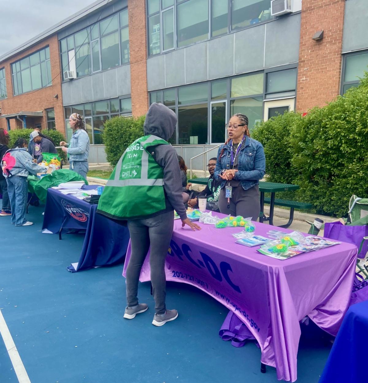 OPC’s Chawndise Battle behind our table of valuable utility information and giveaways at Mayor Bowser’s 10th Annual Spring Cleanup at Garrison Elementary School in Northwest.