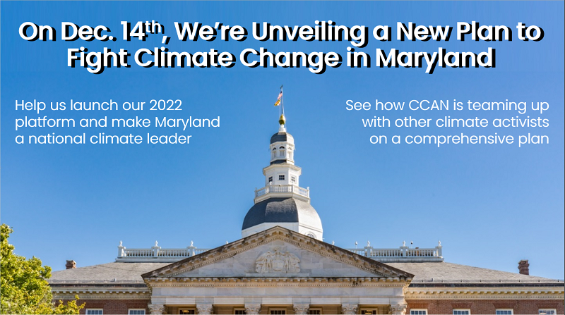That’s why CCAN has worked tirelessly with other top climate activists — Interfaith Power & Light (DC.MD.NoVA), Maryland League of Conservation Voters, Maryland Legislative Coalition-Climate Justice Wing, Maryland Sierra Club, and others — to develop a comprehensive climate platform for the 2022 General Assembly session.